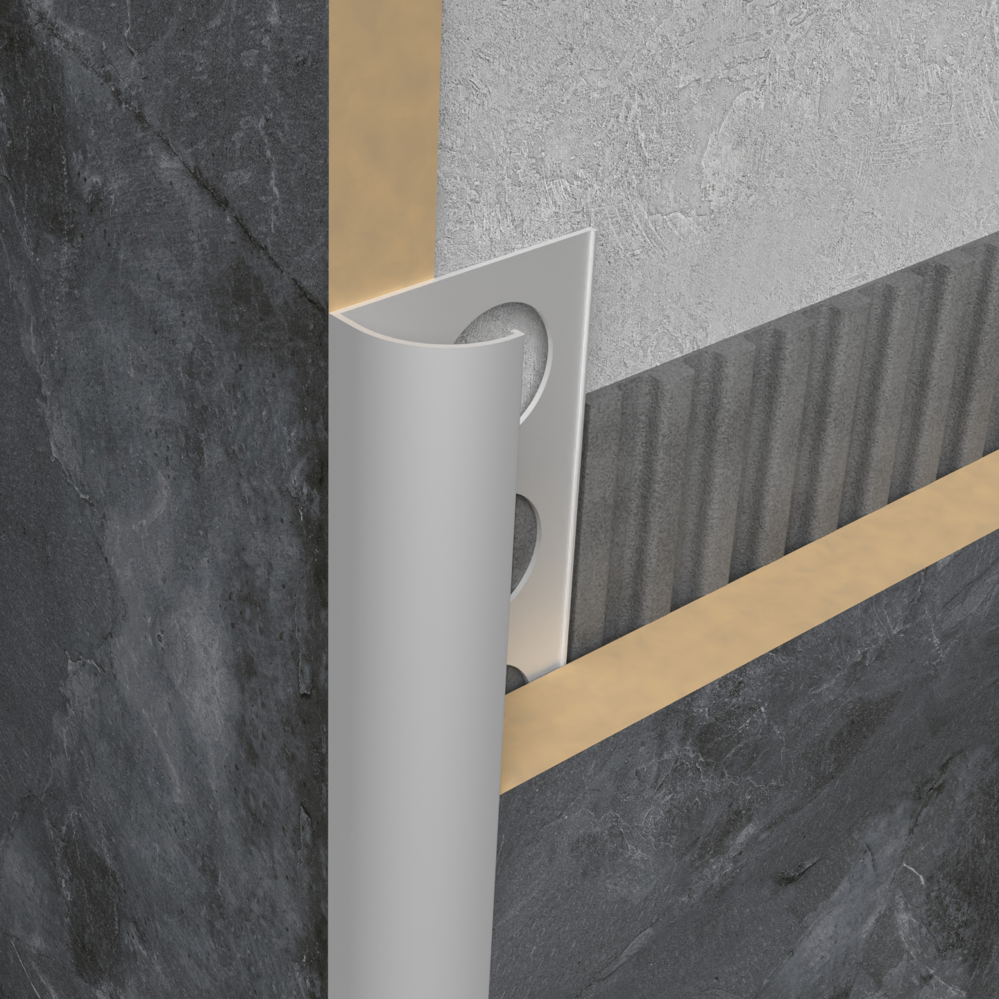 The Round Edge Tile Trim by Aluminiumpark is a sleek and stylish edging solution for tile installations, featuring a rounded profile that not only adds a touch of sophistication to your space but also protects the edges of your tiles from damage caused by foot traffic or furniture.